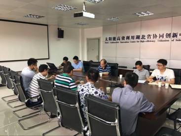6月1日下午,湖北第二师范学院发展规划与基建处处长徐晓、科研处处长吴田、建筑与材料工程学院院长王超等携企业负责人来太阳能高效利用湖北省协同创新中心调研,太阳能中心常务副主任吴铁洲与湖北第二师范学院相关领导进行座谈,太阳能中心部分团队成员及研究生参加了座谈会。