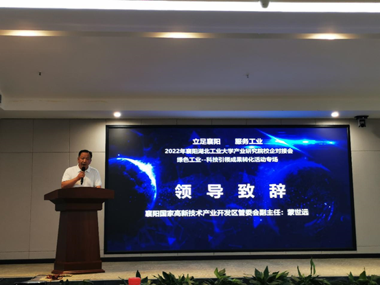 本次校企合作对接会是以“湖北工业大学绿色工业科技成果作为创新引领,强化产学研用深度融合,促进科技成果转化”为主题,着眼于襄阳高新区高端装备制造、电子信息、新能源新材料等产业领域的创新需求开展的专场活动。
