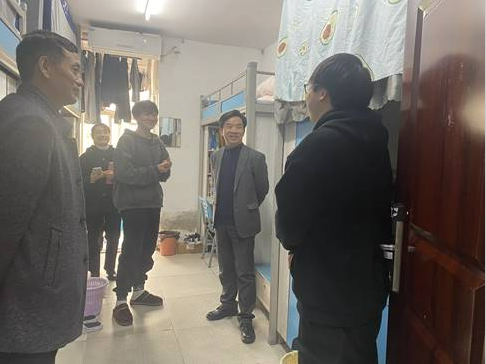 一行人还来到了对口联系的学生宿舍,与同学们进行亲切交流。宋小春先向同学们询问了最近的学习状态,就课程学习与同学们进行了深入沟通,鼓励同学们从现在开始就要打好专业基础。同时,宋小春也关心同学们在生活等其他方面是否有困难或者对学校的建议,表示同学们有困难一定要提,学校会努力解决同学们的困难,希望同学们与学校一同努力,共同建设美丽校园。