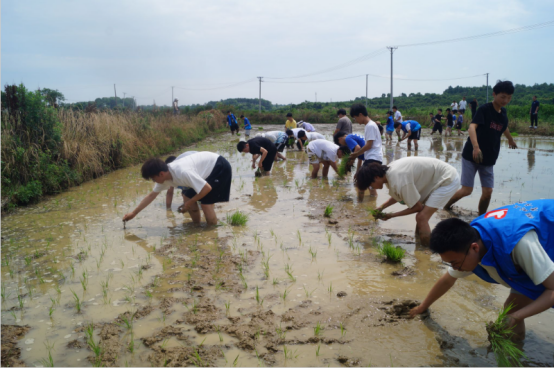 在园区负责人的引导下,师生通力合作,用了2个小时完成了一片稻田的播种任务。22级自动化班江含韵感叹“看到学长自己的创业基地听了学长的创业成长故事,倍感震惊”。“水稻田里土壤泥泞难于行走,一踩脚就陷进去了,要费很大的劲才能拔出来,切实体会到农民种粮的辛苦。”插秧结束后,20级电信班朱迪讲。