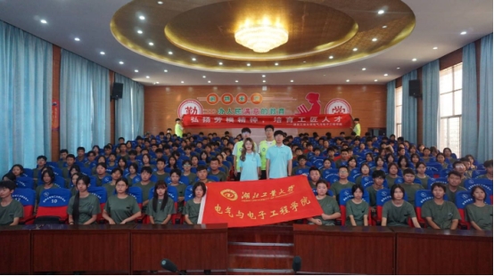 聚焦工匠精神,蓝电中心的师生们精心设计问卷调研、组件宣讲团前往襄阳市,面向襄阳市企业及职业高中师生开展劳动精神及工匠精神的问卷调研及讲座,为后续科普工作提供数据支持。同时,带领学生走出课堂,亲身投入到社会中去,在学校的讲台、电气企业的生产车间等各行各业的一线位置中,直观接鲀各行各业中的劳动模范,直接领悟"匠人"精神价值,激发社会各界对劳动价值的认同和对科技创新的热情。