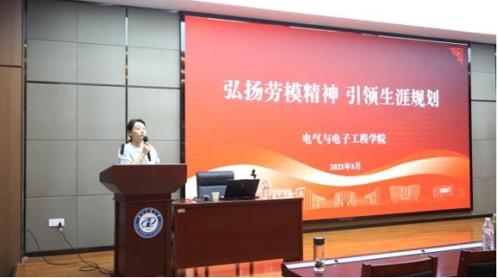 5月22日,电气与电子工程学院在1-005举办“学习劳模精神,赋能职业规划”专题活动。武新电气董事长、行业劳模杜小刚应邀作“工科人生 成就未来”主题讲座,王娇出席并总结致辞。