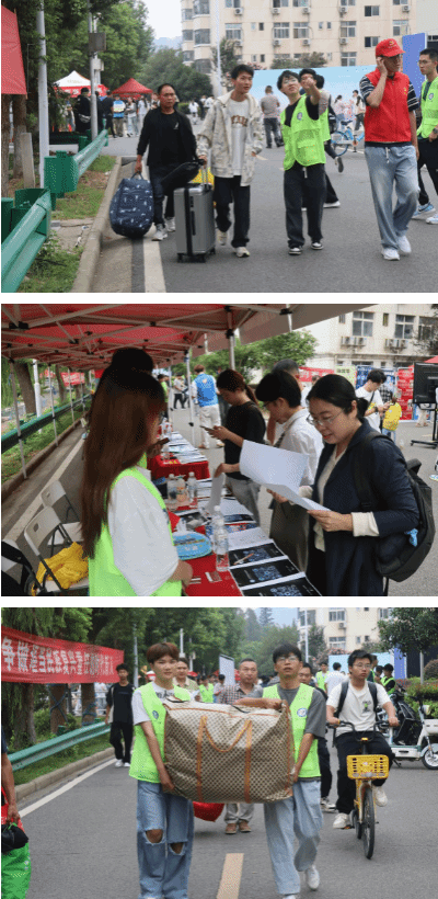 “同学,我帮你提行李!”“东苑宿舍这边走,路上我给你讲讲校园里的生活小技巧!” 迎新现场,身着志愿服的学生志愿者们成为最亮眼的风景线。尽管有时烈日当空,汗水浸湿衣衫,但他们的笑容始终灿烂,热情丝毫不减。学院严格遵循“安全有序、热情周到、便捷高效” 的原则,在东苑2栋、7栋,研究生公寓等报到点精心设置党员先锋岗、专家教授咨询点、新生报到服务点、绿色通道咨询站、蓝电中心展示台及征兵入伍咨询点六大服务阵地,全方位覆盖新生报到需求 -- 党员先锋岗发挥模范带头作用,主动帮扶有需要的新生;专家教授咨询点为新生解读专业课程体系与发展方向;绿色通道咨询站保障家庭经济困难新生顺利入学;蓝电中心展示台则通过实物与图文,让新生提前感受学院的学科特色与科研实力,一系列贴心服务赢得新生及家长的连连称赞。